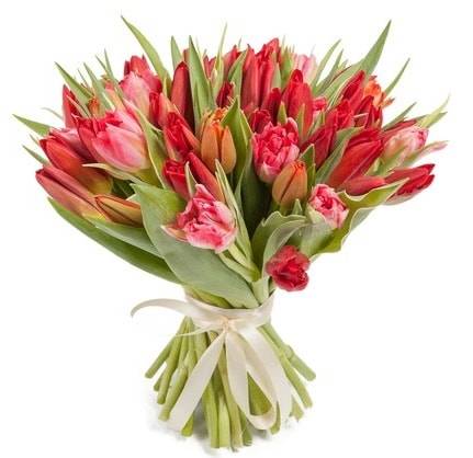 21 красный тюльпан, перевязанный лентой, представляет собой шикарную композицию «Алое солнце». Красный цвет означает пылкую любовь, страсть и значимость. Такой букет идеально подойдет для подарка любимой женщине. Но и друзья или коллеги непременно обрадуются изысканным цветам, тюльпаны источают шикарный запах, который поведет за собой к природе.
