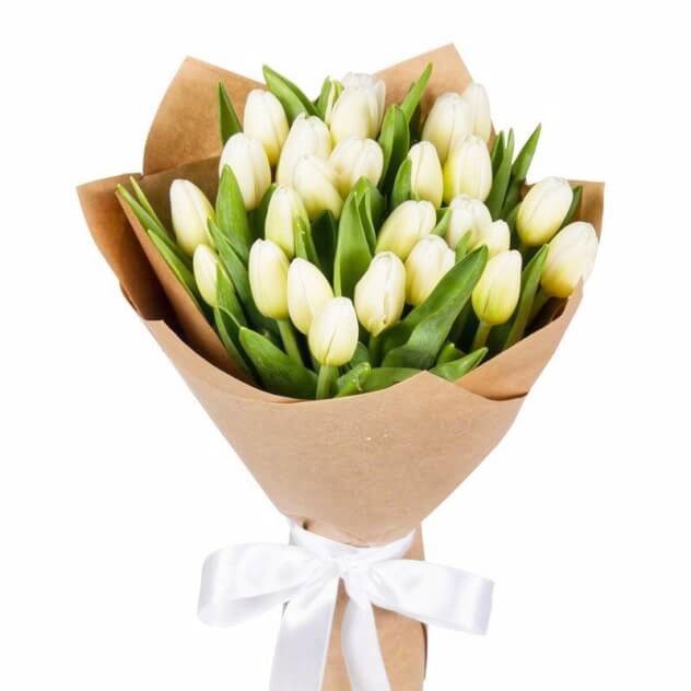 Хотите красиво признаться в любви своей девушке и подчеркнуть её нежность? Тогда букет застенчивых белоснежных тюльпанов станет идеальным вариантом. Вот уже больше нескольких веков подряд европейцы верят, что именно белые тюльпаны приносят счастье и благополучие влюбленным парам. Роскошные весенние цветы с тонким сладковатым ароматом олицетворяют чистоту, женственность и искреннюю любовь. Что может лучше рассказать о светлых чувствах и благородных намерениях молодого человека, чем пышный букет из белых тюльпанов? Даже самая капризная девушка будет в восторге от такого утонченного презента.