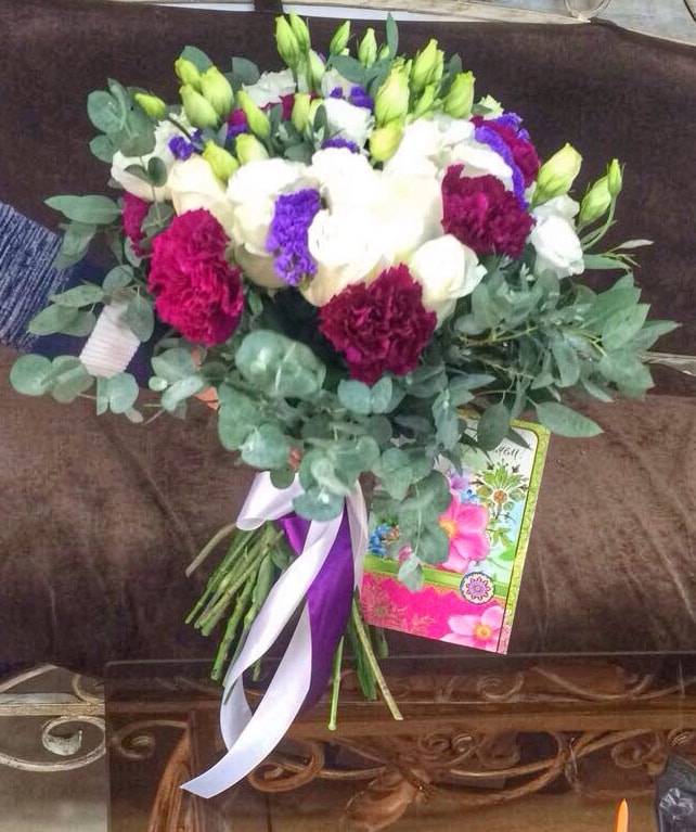 Гвоздики, входящие в состав букета, помогут вам выразить с помощью этой цветочной композиции свою увлеченность и очарование адресатом. Белые розы являются символом чистоты и невинности, а необычный цветок лизиантус придает букету особую эффектность и делает его невероятно оригинальным и необычным. К тому же, использование зелени эвкалипта придает свежести композиции, благодаря чему она выглядит еще привлекательней. Такой букет непременно поможет вам добиться прощения от дорогого человека.